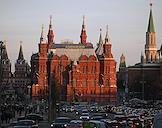 Виды Москвы. Жанровая фотография. Дорожное движение на Тверской улице. Здание Государственного Исторического музея.