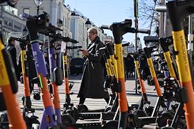 Виды Москвы. Большая Никитская улица. Жанровая фотография. Парковка электросамокатов.