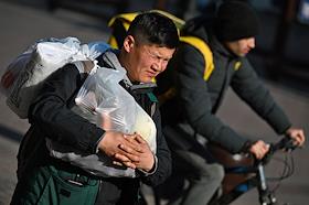 Виды Москвы. Улица Арбат. Жанровая фотография. Мужчина с пакетами через плечо.