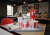 Жанровая фотография. Поднос с едой и напитками на столике в ресторане быстрого питания сети KFC.