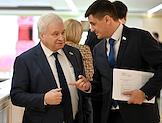Пленарное заседание Совета Федерации (СФ) России. Генеральный директор - председатель правления ОАО "РЖД" Олег Белозеров (слева) перед началом заседания.