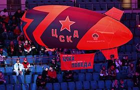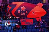 Continental Hockey League (KHL). Championship season 2022/23. Match between the teams of CSKA (Moscow) - "Lokomotiv" (Yaroslavl) at the stadium "CSKA Arena". Fans of the CSKA team before the start of the match.