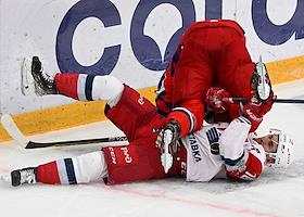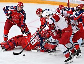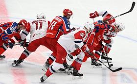 Continental Hockey League (KHL). Championship season 2022/23. Match between the teams of CSKA (Moscow) - "Lokomotiv" (Yaroslavl) at the stadium "CSKA Arena".