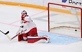 Continental Hockey League (KHL). Championship season 2022/23. Match between the teams of CSKA (Moscow) - "Lokomotiv" (Yaroslavl) at the stadium "CSKA Arena". Lokomotiv goalkeeper Daniil Isaev during the match.