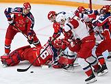 Continental Hockey League (KHL). Championship season 2022/23. Match between the teams of CSKA (Moscow) - "Lokomotiv" (Yaroslavl) at the stadium "CSKA Arena". Players during the match.