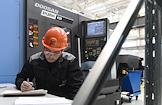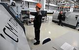 Церемония открытия новой производственной площадки завода "Измерон" – одного из технологических лидеров в России на рынке внутрискважинного оборудования для нефтегазовой отрасли. Рабочий в цехе.