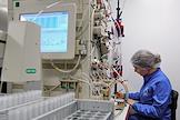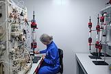 Церемония открытия второй очереди завода "Фармасинтез-Норд" группы компаний "Фармасинтез" в ОЭЗ "Санкт-Петербург" на площадке "Новоорловская". Сотрудники компании во время работы.
