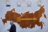 Церемония открытия второй очереди завода "Фармасинтез-Норд" группы компаний "Фармасинтез" в ОЭЗ "Санкт-Петербург" на площадке "Новоорловская". Вице-губернатор Олег Эргашев на церемонии на фоне макета карты России с логотипом предприятия.
