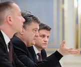 Президент Украины Петр Порошенко (в центре) во встречи с первым заместителем директора-распорядителя Международного валютного фонда (МВФ) Дэвидом Липтоном и директором Европейского департамента МВФ Поулом Томсеном.