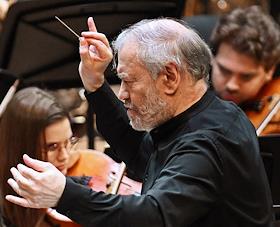 Концерт "Рахманинов. 150 лет со дня рождения" в Концертном зале имени П. И. Чайковского. Художественный руководитель Мариинского театра, дирижер Валерий Гергиев во время концерта.
