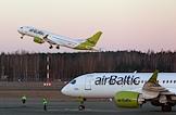 Виды Риги. Самолеты авиакомпании AirBaltic в Международном аэропорту.