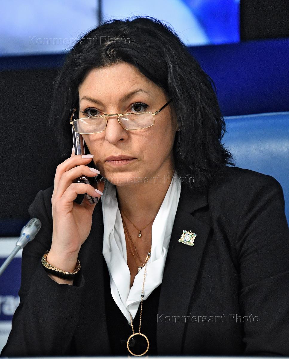 Press conference dedicated to the presentation of the urban environment quality index for 2022, calculated by the Russian Ministry of Construction and the DOM.RF Development Institute, at the TASS press center. Chief Architect of the Khanty-Mansiysk Autonomous Okrug - Yugra Viktoria Semyonov (left) during the press conference.