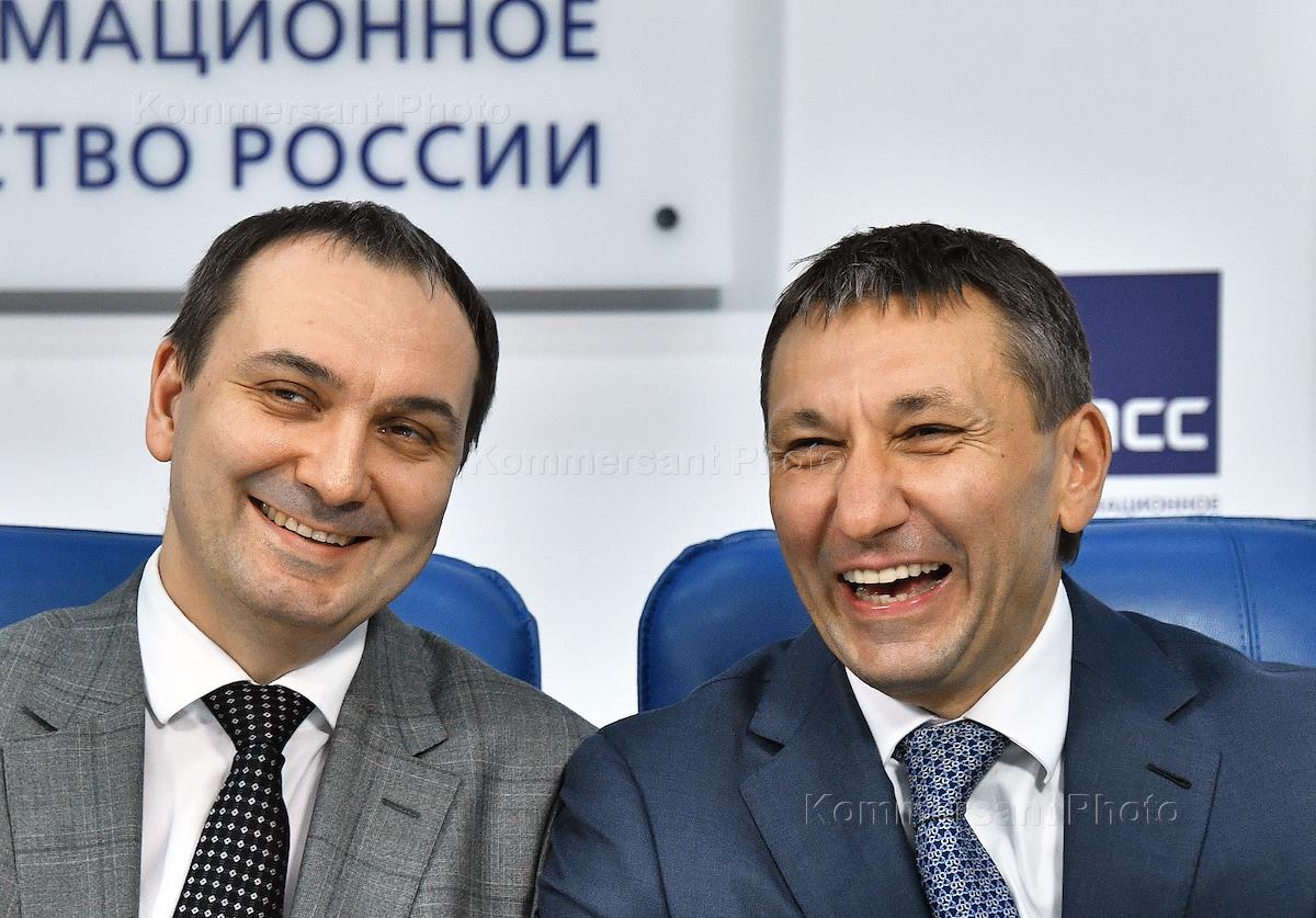 Press conference dedicated to the presentation of the urban environment quality index for 2022, calculated by the Russian Ministry of Construction and the DOM.RF Development Institute, at the TASS press center. Minister of Construction, Housing and Communal Services of the Chechen Republic Muslim Zaipullayev (left) and Deputy CEO of JSC "DOM.RF" Denis Filippov (right) before the press conference.