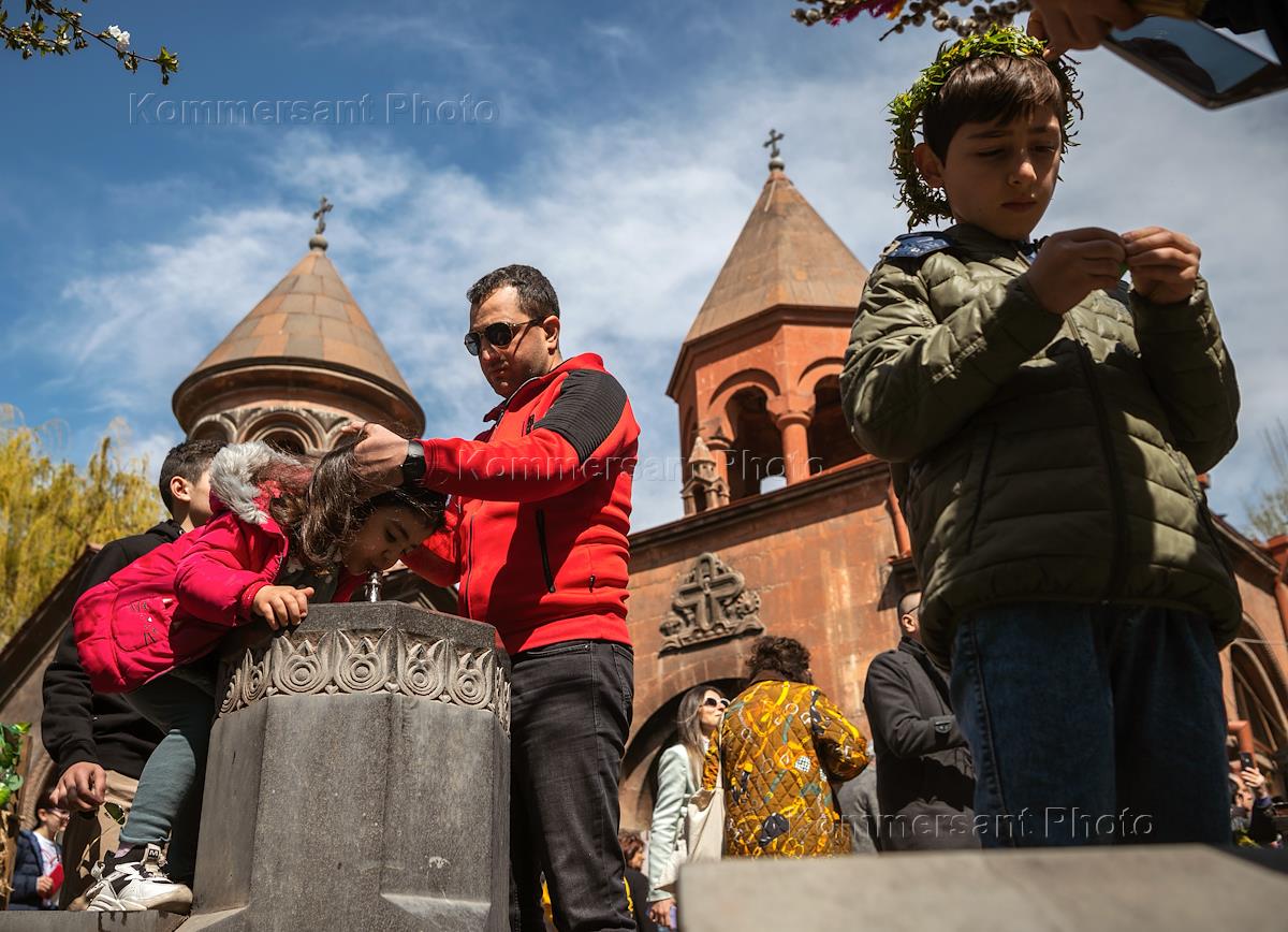 Tsaghkazard - Palm Sunday of the Armenian Apostolic Church in the temple of the Almighty Mother of God. Genre photography.
