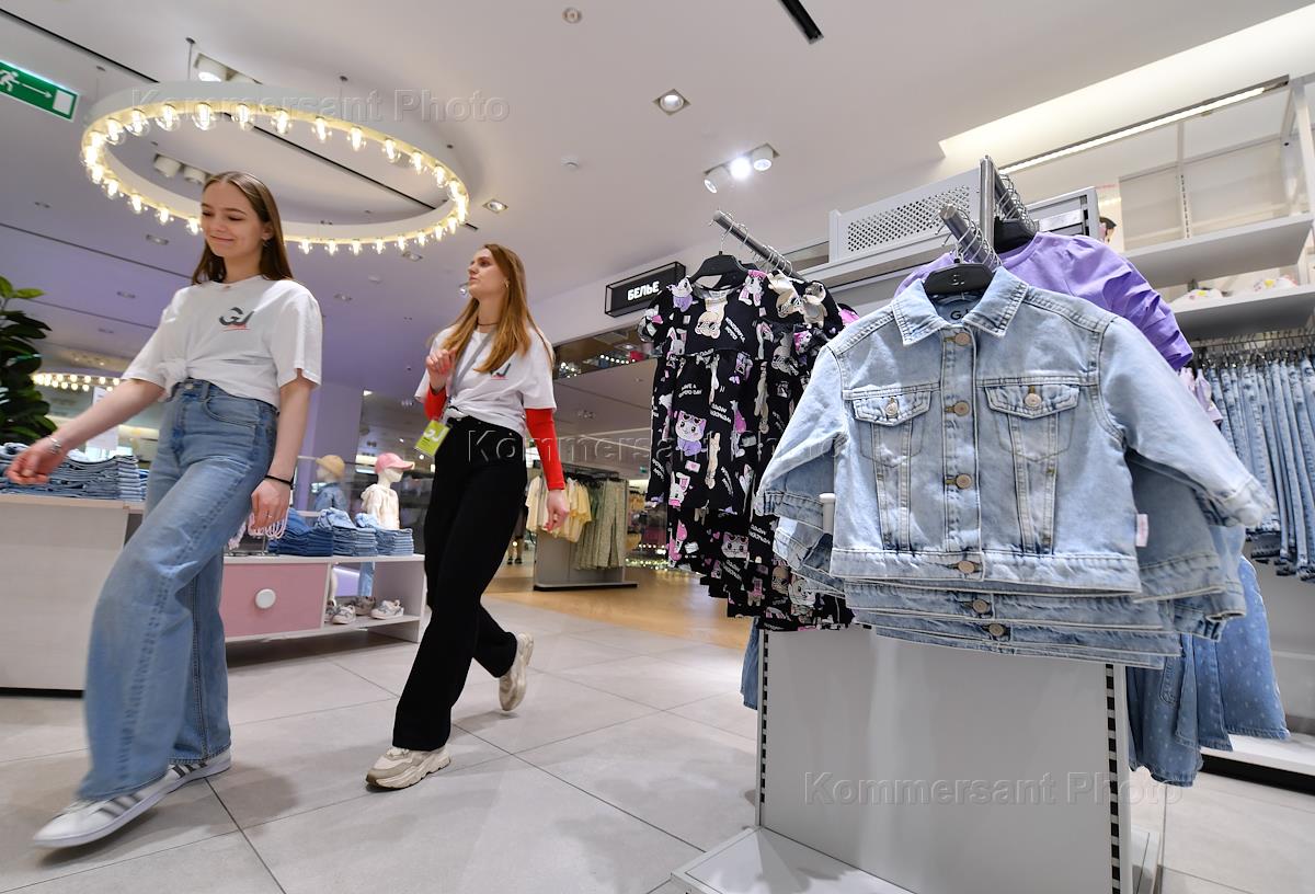 The operation of the Gloria Jeans store ("Gloria Jeans") on Tverskaya Street. Genre photography. Customers in the fitting room of the store.