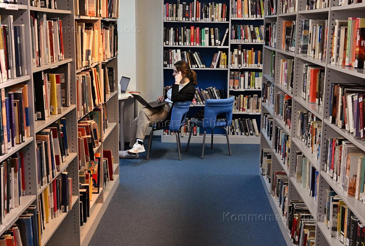 Всероссийская государственная библиотека иностранной литературы имени М.И.Рудомино. Жанровая фотография. Читатели во время работы в библиотеке.