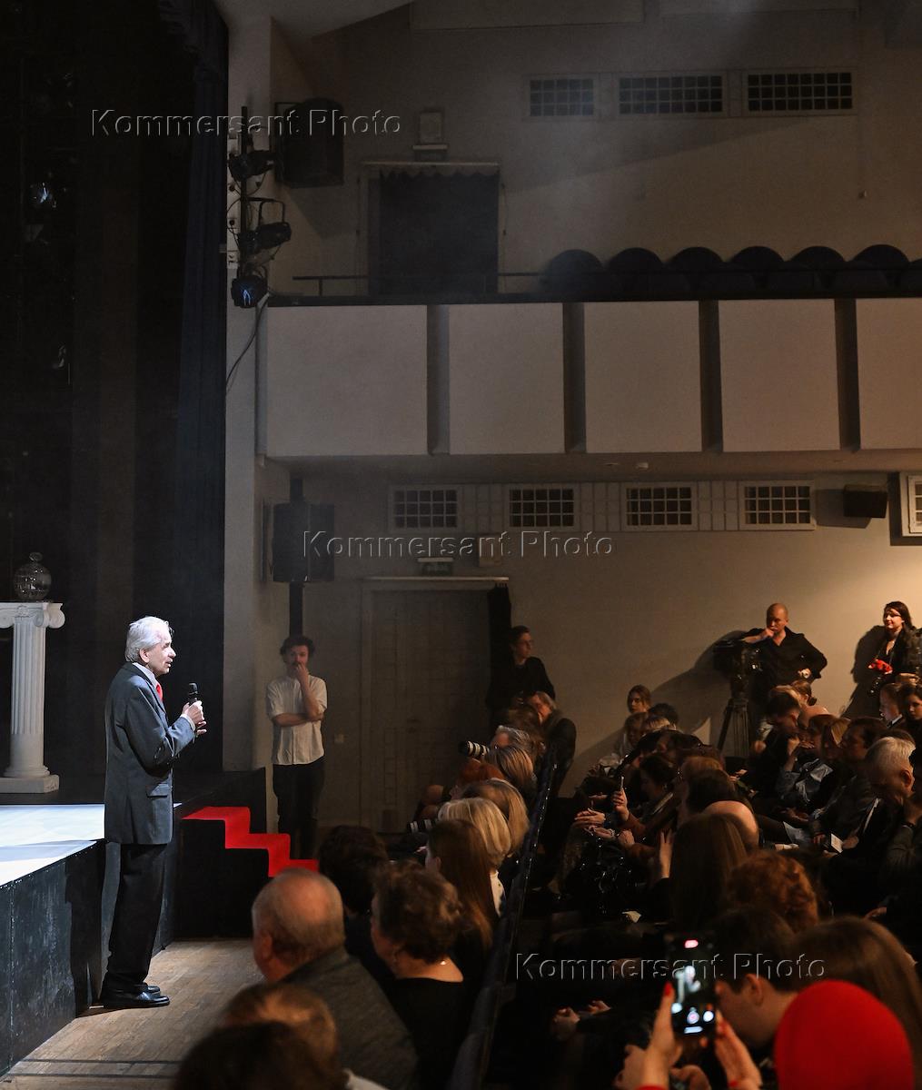 XXI award ceremony for the winners of the Moscow annual theater award of the Union of Theater Workers of Russia "The Highlight of the Season" in 2023 at the Theater Center "On Strastnoy". Chairman of the Russian Union of Theater Workers, artistic director of the Et Cetera theater Alexander Kalyagin at the ceremony.