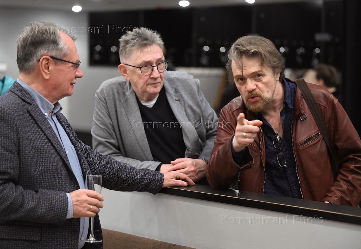 XXI award ceremony for the winners of the Moscow annual theater award of the Union of Theater Workers of Russia "The Highlight of the Season" in 2023 at the Theater Center "On Strastnoy". Artistic director of the Russian State Academic Youth Theater Alexei Borodin (center) and rector of the Literary Institute, writer Alexei Varlamov (right) at the ceremony.