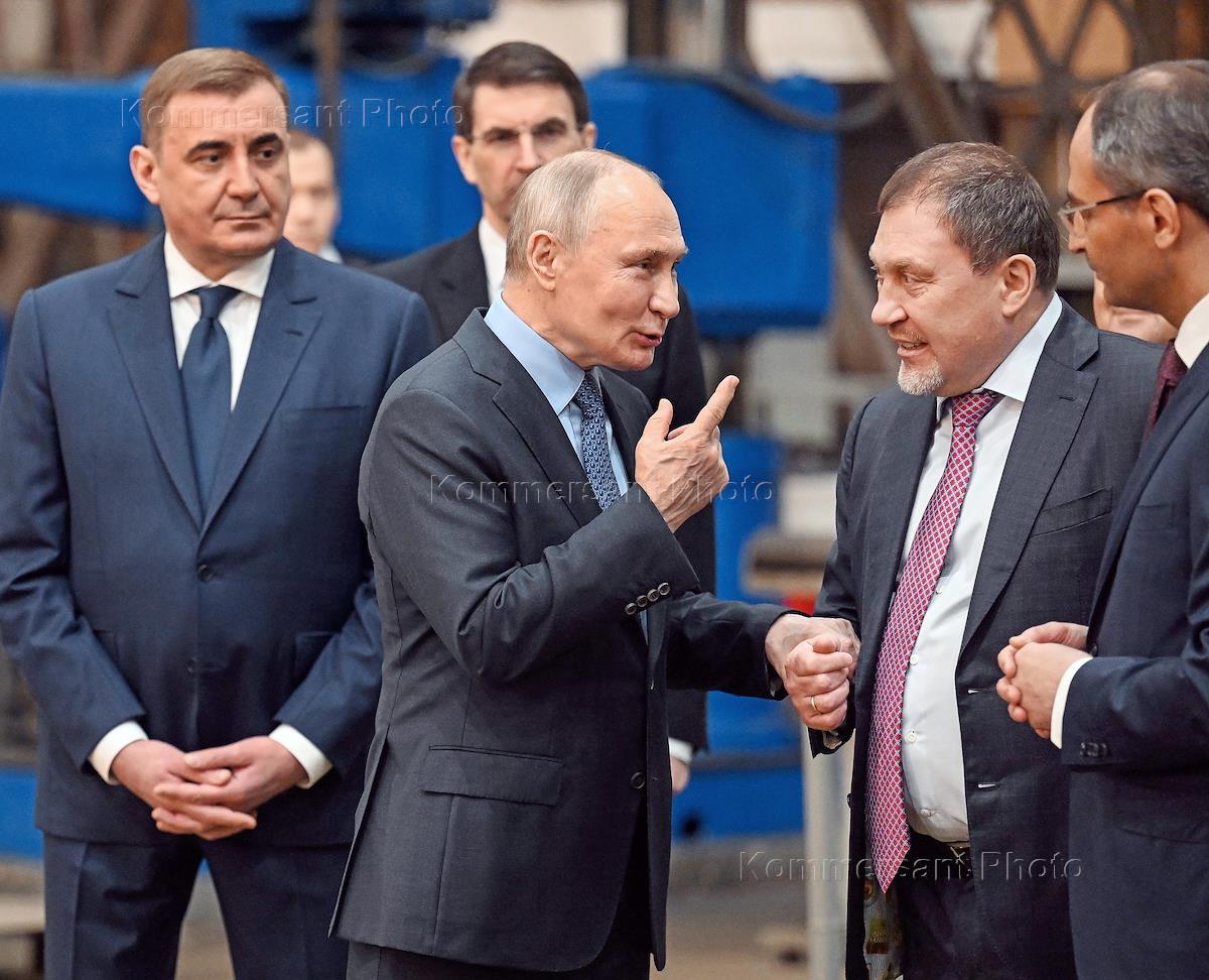Рабочая поездка президента России Владимира Путина в Тулу. Слева направо: губернатор Тульской области Алексей Дюмин, полномочный представитель президента России в Центральном федеральном округе Игорь Щеголев, президент России Владимир Путин, генеральный директор ООО "ПромТехКом", член совета директоров АО "Тулажелдормаш" Александр Силкин и генеральный директор АО "Тулажелдормаш" Артем Асатрян во время посещения завода "Тулажелдормаш".