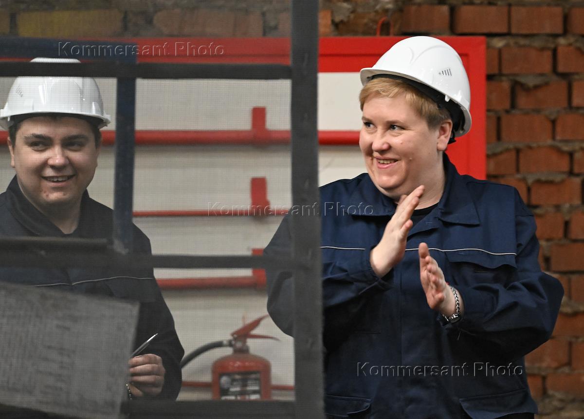 Рабочая поездка президента России Владимира Путина в Тулу. Рабочие во время посещения президента России Владимира Путина завода "Тулажелдормаш".