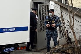 Selection of a preventive measure for Darya Trepova, who was detained on suspicion of involvement in the explosion at the Street Bar cafe in St. Petersburg and the murder of war correspondent Vladlen Tatarsky, in the Basmanny District Court. Genre photography. A police officer in a medical mask at the entrance to the courthouse.