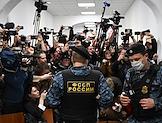 Selection of a preventive measure for Darya Trepova, who was detained on suspicion of involvement in the explosion at the Street Bar cafe in St. Petersburg and the murder of war correspondent Vladlen Tatarsky, in the Basmanny District Court. Genre photography. Journalists in the corridor of the court.