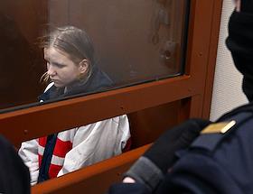 Selection of a preventive measure for Darya Trepova, who was detained on suspicion of involvement in the explosion at the Street Bar cafe in St. Petersburg and the murder of war correspondent Vladlen Tatarsky, in the Basmanny District Court. Defendant Daria Trepova during the court session.