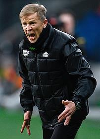 Фонбет - Кубок России по футболу 2022/23. Матч между командами "Динамо" (Москва) - "Акрон" (Тольятти) на стадионе "ВТБ Арена". Главный тренер команды "Акрон" Евгений Калешин во время матча.