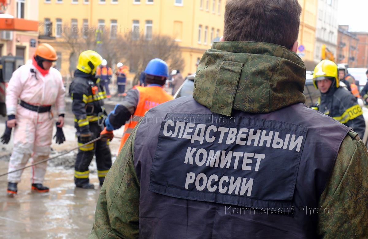 Сотрудники спасательной службы города и Следственного комитета России на месте прорыва трубы и размыва дорожного полотна по улице Дровяная, дом 6.