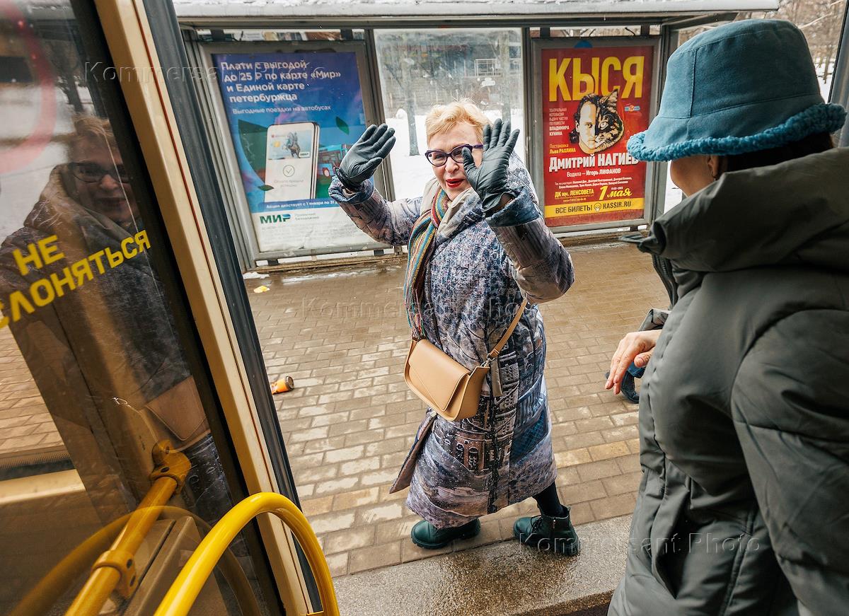 XIX Международный "Смешной фестиваль". День Витамина С. Пассажиры выходят из трамвая № 6, где артисты клоун-мим-театра "Мимигранты" проводят "Витаминно-трамвайный флешмоб" для создания "оранжевого" настроения.
