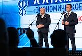 XXIX Всероссийский форум деловых СМИ 2023 в международном мультимедийном пресс-центре "Россия сегодня". Член комитета Государственной думы России по бюджету и налогам Валерий Скруг (слева) и вице-президент Торгово-промышленной палаты (ТПП) России Максим Фатеев (второй справа) во время церемонии награждения победителей XXIX Всероссийского конкурса журналистов "Экономическое возрождение России" по итогам 2022 года.
