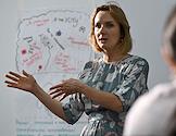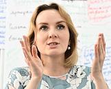 Встреча уполномоченного при президенте России по правам ребенка Марии Львовой-Беловой с советниками директоров по воспитанию и участниками проекта "Лига вожатых" в государственном автономном учреждении (ГАУ) города Москвы "Медиацентр". Уполномоченный при президенте России по правам ребенка Мария Львова-Белова во время встречи.