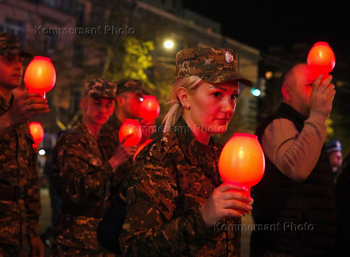 Пасхальный Сочельник (Чрагалуйс) в Ереване. Шествие с лампадами от церкви Св. Саркиса до площади Республики.