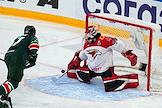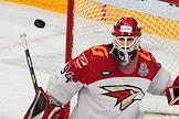 Континентальная хоккейная лига (КХЛ). Чемпионат сезона 2022/23. Финал восток. Матч между командами "Ак Барс" (Казань) и "Авангард" (Омск) на стадионе "Татнефть-Арена". Вратарь команды "Авангард" Василий Демченко во время матча.