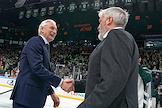 Континентальная хоккейная лига (КХЛ). Чемпионат сезона 2022/23. Финал восток. Матч между командами "Ак Барс" (Казань) и "Авангард" (Омск) на стадионе "Татнефть-Арена". Главный тренер команды "Авангард" Михаил Кравец (справа) и главный тренер команды "Ак Барс" Зинэтула Билялетдинов (слева) после матча.