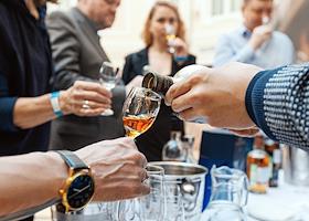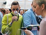 Второй салон вин и напитков Латинской Америки в отел" "Гранд Эмеральд". Выставка-дегустация. Жанровая фотография. Посетители салона дегустируют вино.