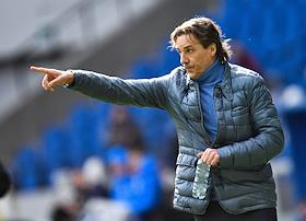Российская Премьер-Лига (РПЛ). МИР - Чемпионат России по футболу 2022/2023. 23-й тур. Матч между командами "Динамо" (Москва) - "Пари НН" (Нижний Новгород) на стадионе "ВТБ Арена". Главный тренер команды "Пари НН" Сергей Юран во время матча.