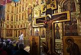 Великая Суббота. Священнослужитель и верующие во время утреннего богослужения в храме Святой Троицы.