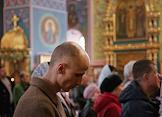 Великая Суббота. Верующие во время утреннего богослужения в храме Святой Троицы.