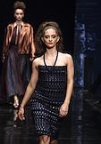 Санкт-Петербургская неделя моды St. Petersburg Fashion Week на новой сцене Александринского театра. Показ бренда JULIA DALAKIAN. Модель во время показа.