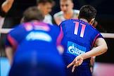 Пари Суперлига по волейболу. Плей-офф, 3-й матч, 1/2 финала. Матч между командами "Зенит" (Казань) - "Локомотив" (Новосибирск) в Центре волейбола. Жанровая фотография.