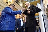 Открытый фестиваль искусств "Черешневый лес". Церемония открытия магазина "Динамо" и выставки "Динамо: на все сто!" в ГУМе. Председатель наблюдательного совета компании Bosco di Ciliegi Михаил Куснирович (слева) и архивариус клуба "Динамо" Юрий Кошель (справа) на церемонии.