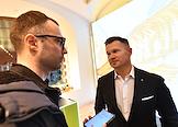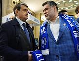 Открытый фестиваль искусств "Черешневый лес". Церемония открытия магазина "Динамо" и выставки "Динамо: на все сто!" в ГУМе. Председатель наблюдательного совета компании Bosco di Ciliegi Михаил Куснирович (слева) и генеральный директор футбольного клуба "Динамо" Павел Пивоваров (справа) на церемонии.