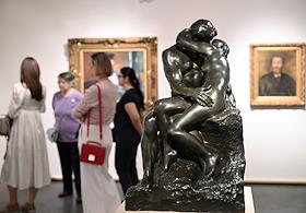 Выставка "После импрессионизма. Русская живопись в диалоге с новым западным искусством" в Государственном музее изобразительных искусств (ГМИИ) имени А.С.Пушкина. Посетители на выставке.