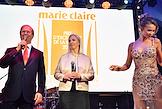 Церемония вручения премии в области красоты Prix d'Excellence de la Beaute в "Особняке Спиридонова". Слева направо: президент Shkulev Media Holding Виктор Шкулев, главный редактор российского журнала Marie Claire и сайта MarieClaire.ru Анна Бурашова и актриса Елена Корж на церемонии.