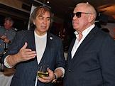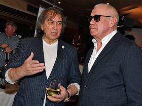 45-й Московский международный кинофестиваль (ММКФ). Ежегодная White Party и церемония вручения премии "Аванс" журнала "Кинорепортер" в ресторане "Чаiка". Президент ассоциации каскадеров России Александр Иншаков (слева) и актер Сергей Гармаш (справа) на церемонии.