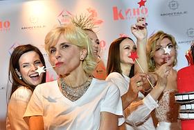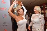 45-й Московский международный кинофестиваль (ММКФ). Ежегодная White Party и церемония вручения премии "Аванс" журнала "Кинорепортер" в ресторане "Чаiка". Балерина Анастасия Волочкова (справа) на церемонии.