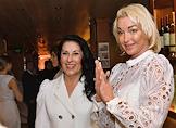 45-й Московский международный кинофестиваль (ММКФ). Ежегодная White Party и церемония вручения премии "Аванс" журнала "Кинорепортер" в ресторане "Чаiка". Актрисы Ольга Филимонова (слева) и Елена Николаева на церемонии.