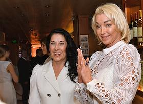 45-й Московский международный кинофестиваль (ММКФ). Ежегодная White Party и церемония вручения премии "Аванс" журнала "Кинорепортер" в ресторане "Чаiка". Актриса Эвелина Бледанс (слева) и балерина Анастасия Волочкова (справа) на церемонии.