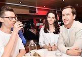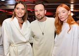 45-й Московский международный кинофестиваль (ММКФ). Ежегодная White Party и церемония вручения премии "Аванс" журнала "Кинорепортер" в ресторане "Чаiка". Слева направо: актеры Святослав Рогожан, Мила Ершова и Анастасия Резник на церемонии.